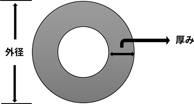 外径/厚み | 0.20 | 0.25 | 0.30 | 0.32 | 0.35 | 0.38 | 0.40 | 0.45 | 0.50 | 0.55 | 0.60 |