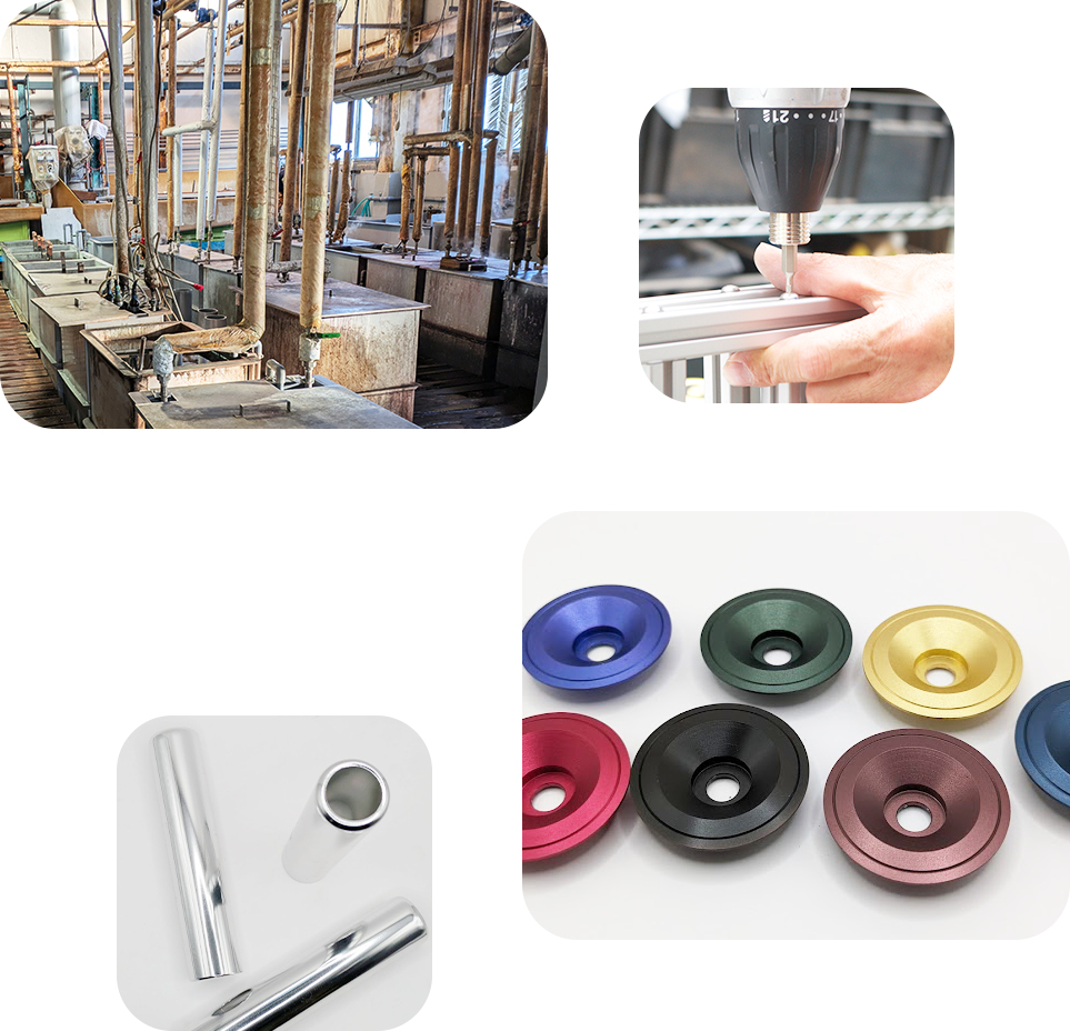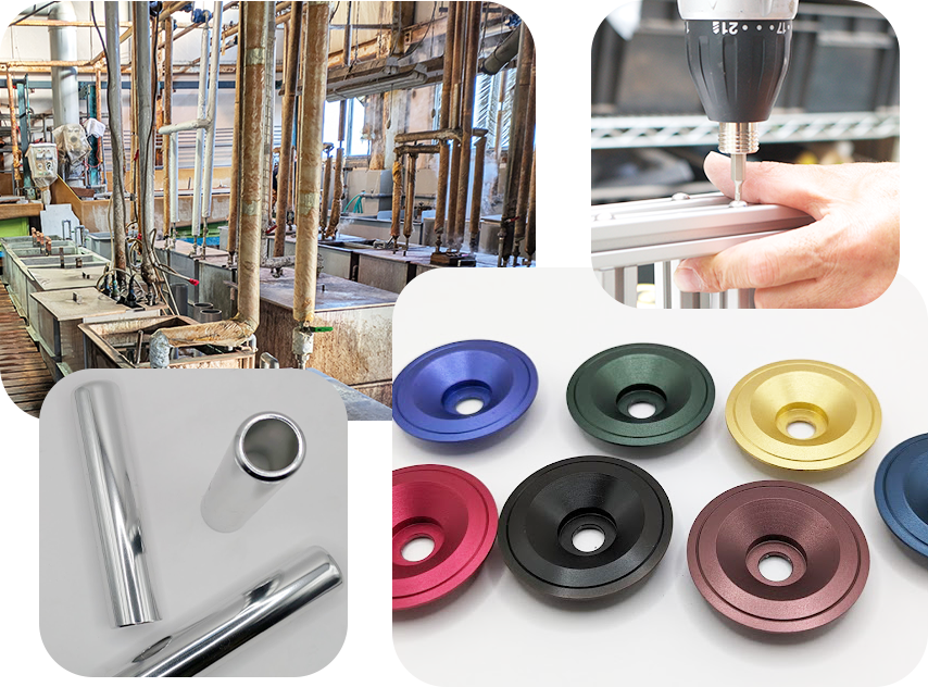また、弊社はアルミの表面 処理(カラーアルマイト)を得意としており、表面を艶消し、梨地 にする事も出来ます。
